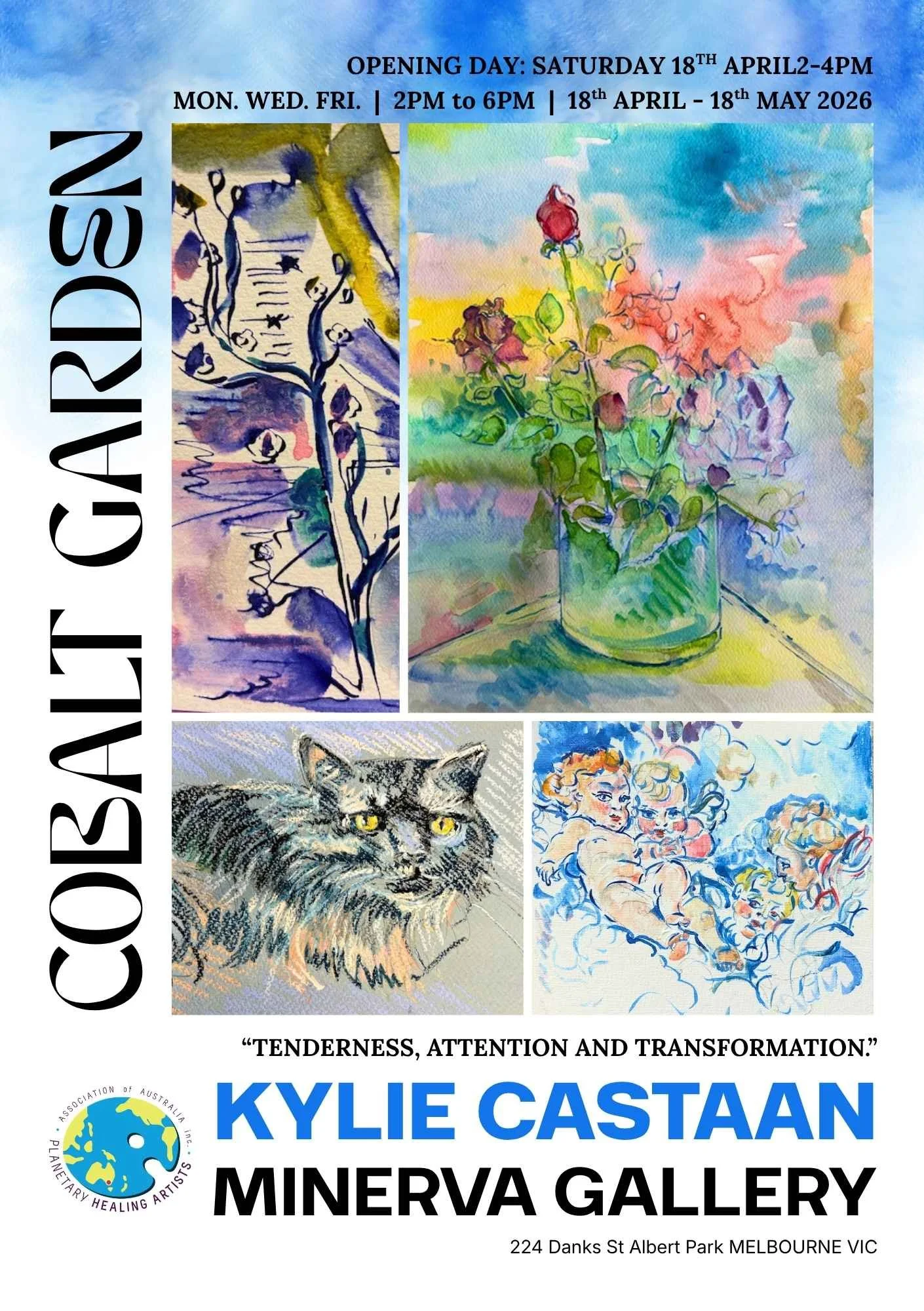 The Opening is on Saturday 18 April at 2pm - 4pm, 224 Danks Street, Albert Park. Cobalt Garden brings together a body of works in ink, watercolour, and soft pastel that move between observation and imagination, intimacy and art historical memory.
