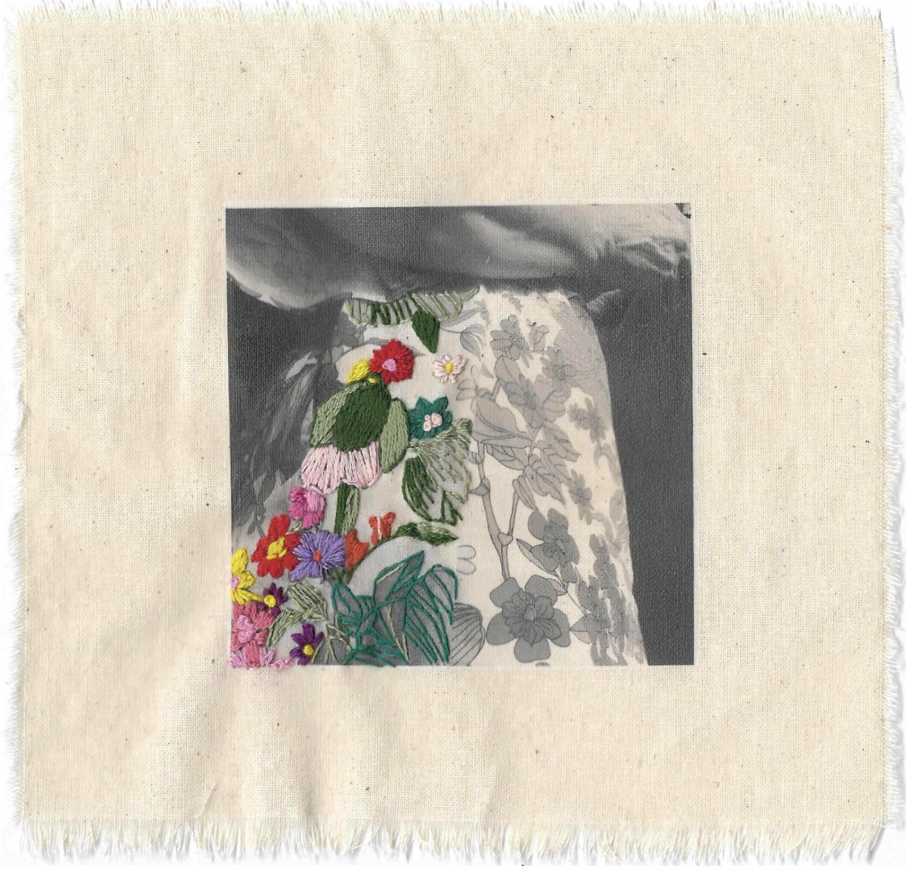 Name of artwork: I Hold What Is Mine - Mum’s Dress Artist: Ruby Vaggelas Medium: Not specified Year: 2021 Artist’s Statement: I Hold What is Mine focuses on inner healing of the past through the connections forged between needle and thread, and oneself.